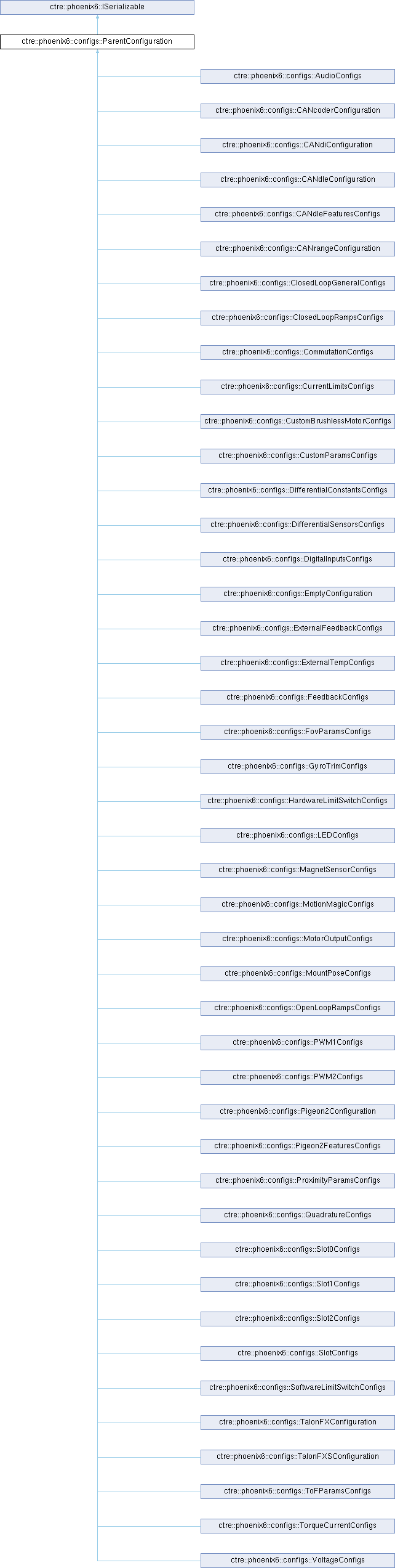 Implemented in ctre::phoenix6::configs::AudioConfigs, ctre::phoenix6::configs::CANcoderConfiguration, ctre::phoenix6::configs::CANdiConfiguration, ctre::phoenix6::configs::CANdleConfiguration, ctre::phoenix6::configs::CANdleFeaturesConfigs, ctre::phoenix6::configs::CANrangeConfiguration, ctre::phoenix6::configs::ClosedLoopGeneralConfigs, ctre::phoenix6::configs::ClosedLoopRampsConfigs, ctre::phoenix6::configs::CommutationConfigs, ctre::phoenix6::configs::CurrentLimitsConfigs, ctre::phoenix6::configs::CustomBrushlessMotorConfigs, ctre::phoenix6::configs::CustomParamsConfigs, ctre::phoenix6::configs::DifferentialConstantsConfigs, ctre::phoenix6::configs::DifferentialSensorsConfigs, ctre::phoenix6::configs::DigitalInputsConfigs, ctre::phoenix6::configs::EmptyConfiguration, ctre::phoenix6::configs::ExternalFeedbackConfigs, ctre::phoenix6::configs::ExternalTempConfigs, ctre::phoenix6::configs::FeedbackConfigs, ctre::phoenix6::configs::FovParamsConfigs, ctre::phoenix6::configs::GyroTrimConfigs, ctre::phoenix6::configs::HardwareLimitSwitchConfigs, ctre::phoenix6::configs::LEDConfigs, ctre::phoenix6::configs::MagnetSensorConfigs, ctre::phoenix6::configs::MotionMagicConfigs, ctre::phoenix6::configs::MotorOutputConfigs, ctre::phoenix6::configs::MountPoseConfigs, ctre::phoenix6::configs::OpenLoopRampsConfigs, ctre::phoenix6::configs::Pigeon2Configuration, ctre::phoenix6::configs::Pigeon2FeaturesConfigs, ctre::phoenix6::configs::ProximityParamsConfigs, ctre::phoenix6::configs::PWM1Configs, ctre::phoenix6::configs::PWM2Configs, ctre::phoenix6::configs::QuadratureConfigs, ctre::phoenix6::configs::Slot0Configs, ctre::phoenix6::configs::Slot1Configs, ctre::phoenix6::configs::Slot2Configs, ctre::phoenix6::configs::SlotConfigs, ctre::phoenix6::configs::SoftwareLimitSwitchConfigs, ctre::phoenix6::configs::TalonFXConfiguration, ctre::phoenix6::configs::TalonFXSConfiguration, ctre::phoenix6::configs::ToFParamsConfigs, ctre::phoenix6::configs::TorqueCurrentConfigs, and ctre::phoenix6::configs::VoltageConfigs.