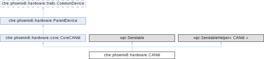 Class for CTR Electronics' CANdi™ branded device, a device that integrates digital signals into the existing CAN bus network.